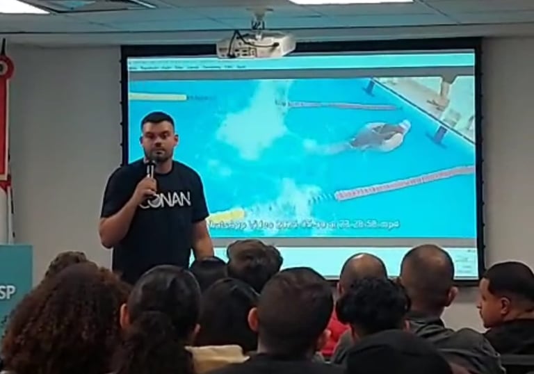 Excelência na arbitragem de natação.